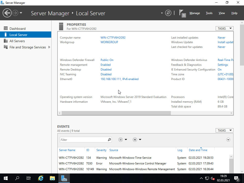 [1] Uruchom [Server Manager] i wybierz [Local Server] w lewym panelu, kliknij [Ethernet] w prawym panelu.